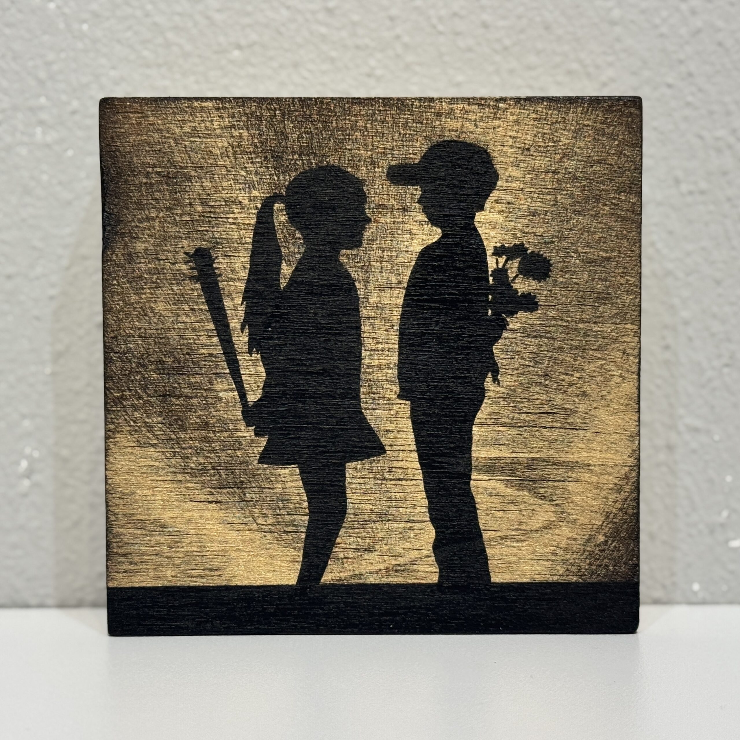 Material: Spray paint on burnt wood