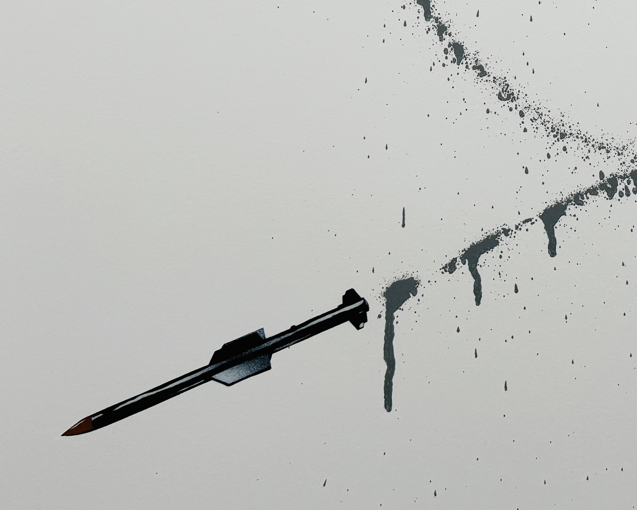Material: Hand painted multiple (spray-painted stencil and dripped spray paint) on 360gsm art paper